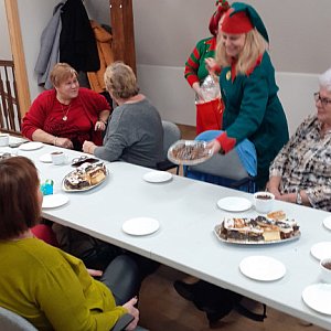 Na ostatnich zajęciach wykonało "słoiki wdzięczności", w których codzienne będą umieszczać karteczkę z podziękowaniem za dobre wydarzenie. Ostatnie zajęcia były bardzo uroczyste. Do Seniorów przyjechały dwa Elfy i przekazały upominki od Świętego Mikołaja. Uczestniczki również obdarowały Elfy własnoręcznie wykonanymi upominkami.
