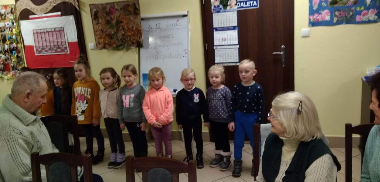 Dzieci z grupy "Pszczółki" z Miejskiego Przedszkola Tęczowy Zakątek w Chełmnie wybrały się do Domu Dziennego Pobytu by uświetnić czas seniorom swoimi występami. Wszyscy razem śpiewali kolędy i świetnie się bawili. Był to niezwykły czas zarówno dla dzieci jak i dla seniorów.