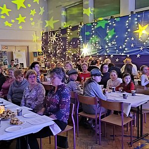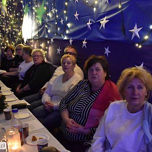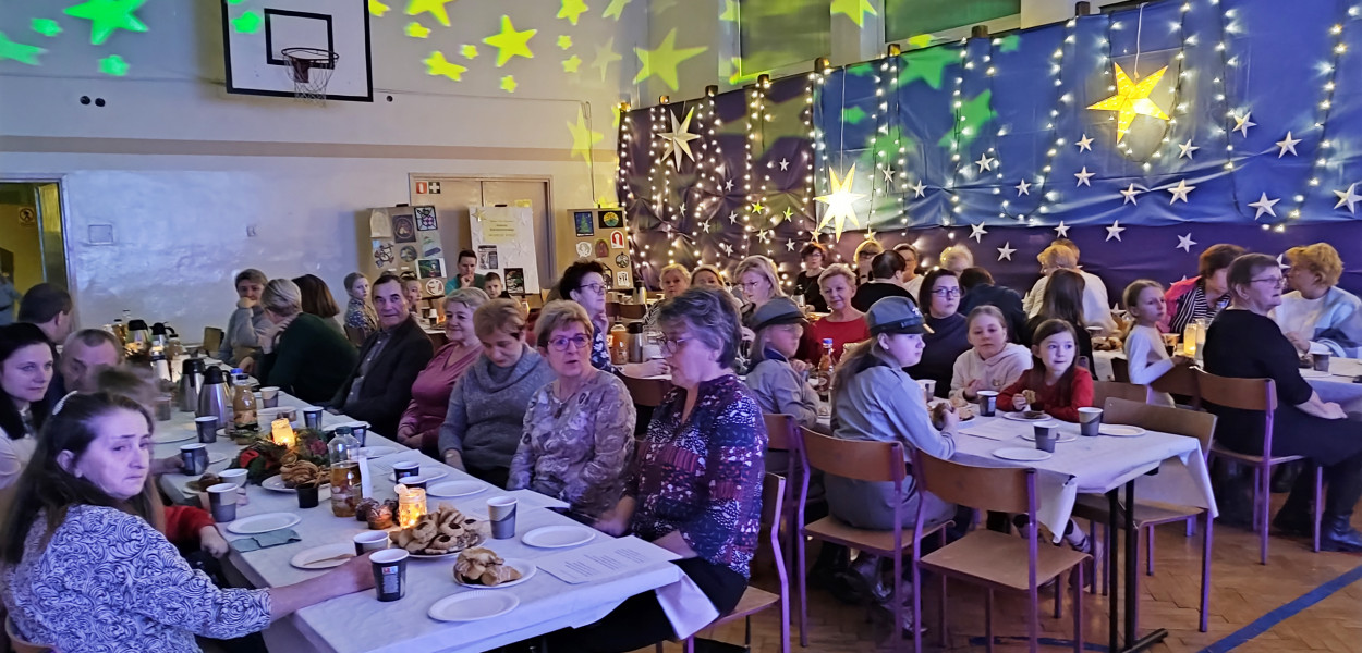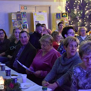 Muzyczną oprawę tego wydarzenia zapewnili muzycy "Duet My" oraz instruktor Grzegorz Jabłoński wraz z uczniem Patrykiem Mądrzejewskim, a także Jarosław Kosiński, przedstawiciel zespołu TABGA, któremu niestety choroba nie pozwoliła wystąpić w pełnym składzie. Mieszkańcy zasiadający przy stołach, zastawionych słodkościami oraz kawą i herbatą, chętnie śpiewali te bardziej i mniej znane kolędy oraz pastorałki. Podczas spotkania wręczono nagrody wraz z dyplomami dla uczestników konkursu fotograficznego "Moja choinka" zorganizowanego na naszym facebooku. Raz jeszcze serdecznie gratulujemy wszystkim uczestnikom.