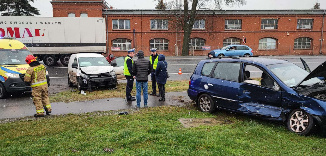 Po dojeździe na miejsce strażacy zastali dwa samochody osobowe po zderzeniu. Samochód VW Caddy znajdował się poza jezdnią (kierowca opuścił samochód o własnych siłach).