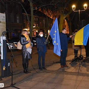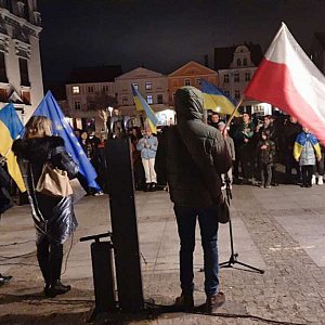 W chłodny piątkowy wieczór na chełmińskim rynku zebrała się grupa osób, aby wyrazić swoją solidarność z walczącą dzielnie Ukrainą. Spotkanie wyznaczono w pierwszą rocznicę agresji Rosjan na Ukrainę. Zgromadzonych przywitał Włodarz miasta, który opowiadał o wielkich sercach Polaków i przede wszystkim mieszkańców Chełmna, niosących pomoc przybyłym do miasta uchodźcom.