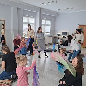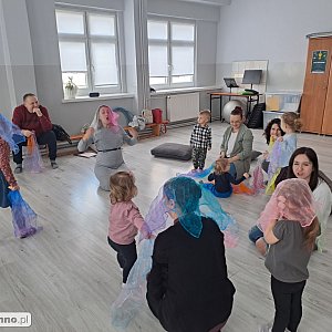 GORDONKI - "Audiacja jest tym dla muzyki, czym myślenie jest dla mowy". Śpiewanki i rytmiczanki w różnorodnych metrach oraz skalach, zabawy z chustą animacyjną, bańkami - tak dzieci wraz ze swoimi opiekunami spędzały niedzielne przedpołudnie (26.02) w Chełmińskim Domu Kultury