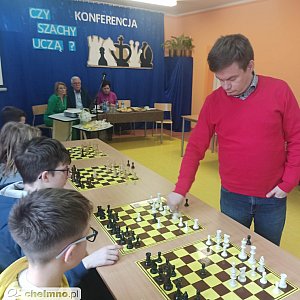 Konferencja rozpoczęła się grą symultaniczną z krajowym mistrzem szachowym Pawłem Kukułą, która dostarczyła mnóstwo emocji 14 uczniom ze szkół Gminy Chełmno oraz 2 dorosłych. Ciekawie było patrzeć na te zmagania.