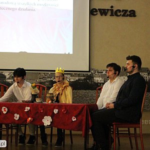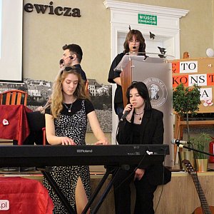 W naszej szkole uroczystość odbyła się trochę wcześniej. Uczniowie klasy I TR z gośćmi przedstawili na scenie naszej pięknej auli, historie uchwalenia Konstytucji 3 Maja 1791 r. Znalazły się tam teksty historyczne, scenki, wiersze i współczesne piosenki.