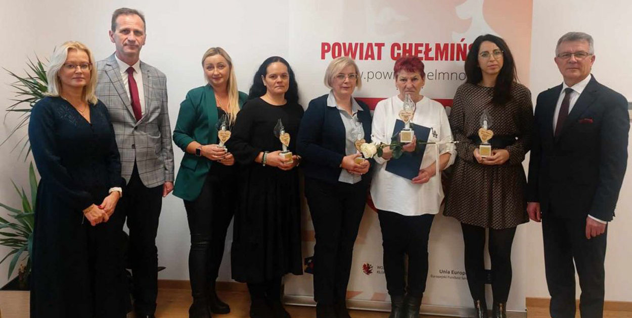22 listopada br. Zarząd Powiatu Chełmińskiego rozstrzygnął konkurs pn. Nagrody Starosty Chełmińskiego dla osób wyróżniających się w działalności pomocy społecznej oraz w wolontariacie. W dniu dzisiejszym w Starostwie Powiatowym w Chełmnie Starosta Chełmiński Zdzisław Gamański, Przewodniczący Rady Powiatu Chełmińskiego Janusz Błażejewicz oraz Dyrektor Powiatowego Centrum Pomocy Rodzinie w Chełmnie Ewa Wirosławska uhonorowali laureatów konkursu.