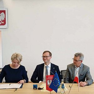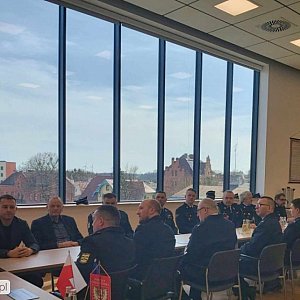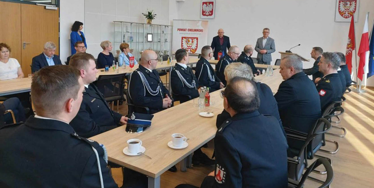 27.03.br. Starosta Chełmiński Zdzisław Gamański i Wicestarosta Wojciech Bińczyk podpisali umowy w sprawie przekazania przez Powiat Chełmiński środków finansowych na dofinansowanie ustawowej działalności Ochotniczych Straży Pożarnych z Powiatu Chełmińskiego z Wójtami Gmin oraz Burmistrzem Miasta Chełmna przy kontrasygnacie Skarbników.