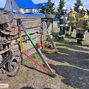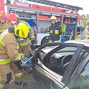 Po części teoretycznej przystąpiono do ćwiczeń praktycznych, gdzie przy użyciu sprzętu hydraulicznego i innych narzędzi stabilizowano pojazdy, usuwano ich poszczególne elementy wykonując dostęp do poszkodowanych.