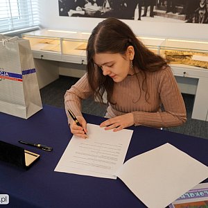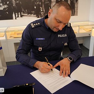Komendant Wojewódzki Policji w Bydgoszczy insp. Jakub Gorczyński podpisał dzisiaj umowę z panią Alicją Werner o przeniesienie autorskich praw majątkowych do przygotowanych przez nią grafik, które znajdą się w kolorowance promującej szeroko rozumiane bezpieczeństwo.