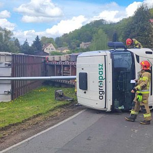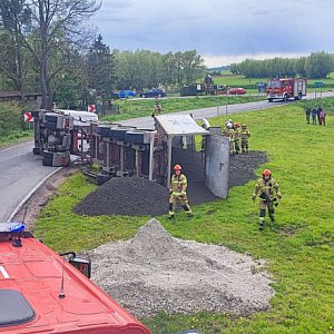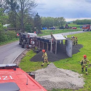 Ciężarowa scania wioząca tłuczeń (ok 20 ton) przewróciła się na prawy bok. Nie było osób poszkodowanych. Do wypadku doszło, kiedy auto ciężarowe stało już przy drodze. W trakcie rozładunku tłucznia pojazd złapał miękkie pobocze i przechylił się. Droga do Bydgoszczy była zablokowana. Policja wyznaczyła objazdy przez Bieńkówkę i Starogród Dolny.