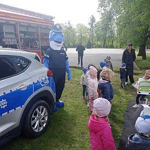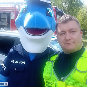 Na stanowisku chełmińskiej Policji dzieci mogły wejść do radiowozu, zagrać w grę plenerową, w trakcie której musiały wykonywać różne zadania i odpowiadać na pytania dotyczące pracy policjantów, pokolorować obrazki, a przede wszystkim przytulić się do Polfina, który bardzo chętnie pozował do zdjęć z dziećmi.