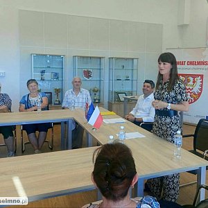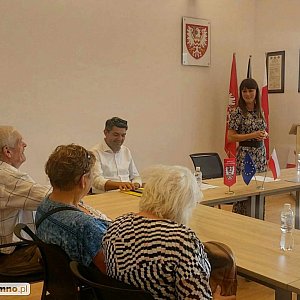 Uczestników powitała Dorota Żulewska - Wicestarosta Chełmiński, która opowiedziała o pracy w urzędzie, dziedzictwie kulturowym i walorach turystycznych naszego Powiatu. Seniorzy zwiedzili gmach Starostwa Powiatowego w Chełmnie, a następnie udali się na wycieczkę po mieście.
