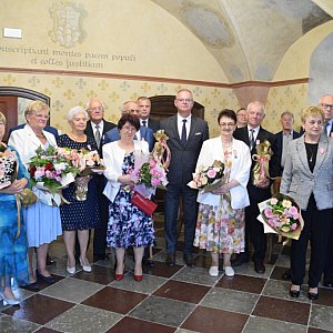 Dzisiaj w ratuszu obchodzono piękny Jubileusz Złotych Godów. Medale Prezydenta z okazji 50-rocznicy ślubu małżeństwom wręczał Burmistrz Miasta Chełmna - Mariusz Kędzierski. Serdeczne gratulacje przekazał również Robert Samcik - Kierownik Urzędu Stanu Cywilnego.