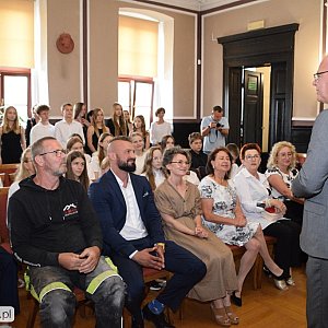 Najlepsze życzenia dla wyróżnionych złożyli również: Iga Jambor-Skupniewicz oraz Dominik Pilkiewicz z Komisji Oświaty, Kultury, Sportu i Ochrony Środowiska Rady Miasta Chełmna. Gratulacje dla uhonorowanych uczniów za ich wybitne osiągnięcia przekazała także Magdalena Ludwikowska - Dyrektor Centrum Obsługi Placówek Oświatowych w Chełmnie.