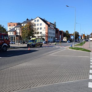 Na miejscu zdarzenia zastano motocykl KTM 350 po zderzeniu z samochodem osobowym marki Opel Astra CCH29J8. Motocykl znajdował się na jezdni, z wyciekami. Samochód znajdował się poza drogą. W wyniku zderzenia poszkodowany został motocyklista, mężczyzna 25 lat (przytomny, z widocznymi obrażeniami lewej kończyny dolnej). Poszkodowany znajdował się na chodniku. Kierujący oraz pasażerka samochodu osobowego nie obnieśli żadnych obrażeń. Policja była na miejscu. Nie stwierdzono dodatkowych zagrożeń.