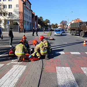 Po pięciu minutach od zgłoszenia zastępy były już na miejscu i natychmiast udzielono pierwszej pomocy poszkodowanemu.