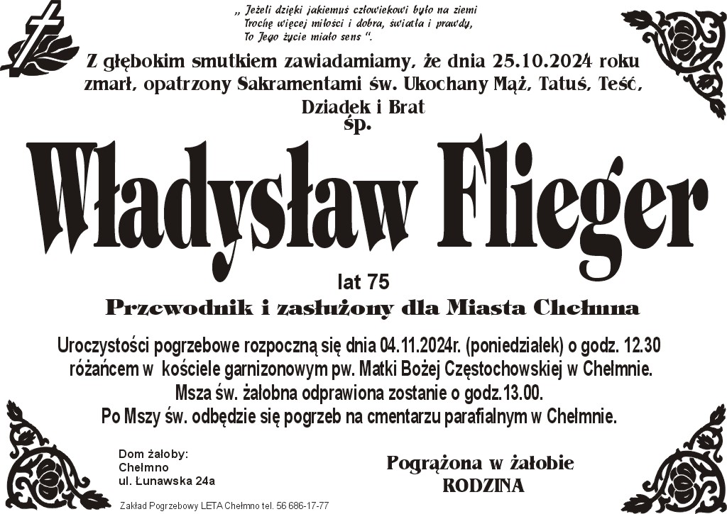 Są ludzie, którzy pozostawiają w sercu ślad; to osobowości kompletne. Władysław Flieger - przewodnik, erudyta, kochający Chełmno i ludzi, był takim właśnie człowiekiem. Można by o nim powiedzieć tak dużo, ale dziś zamiast słów niech popłynie obraz - takiego Cię zapamiętamy Władku!