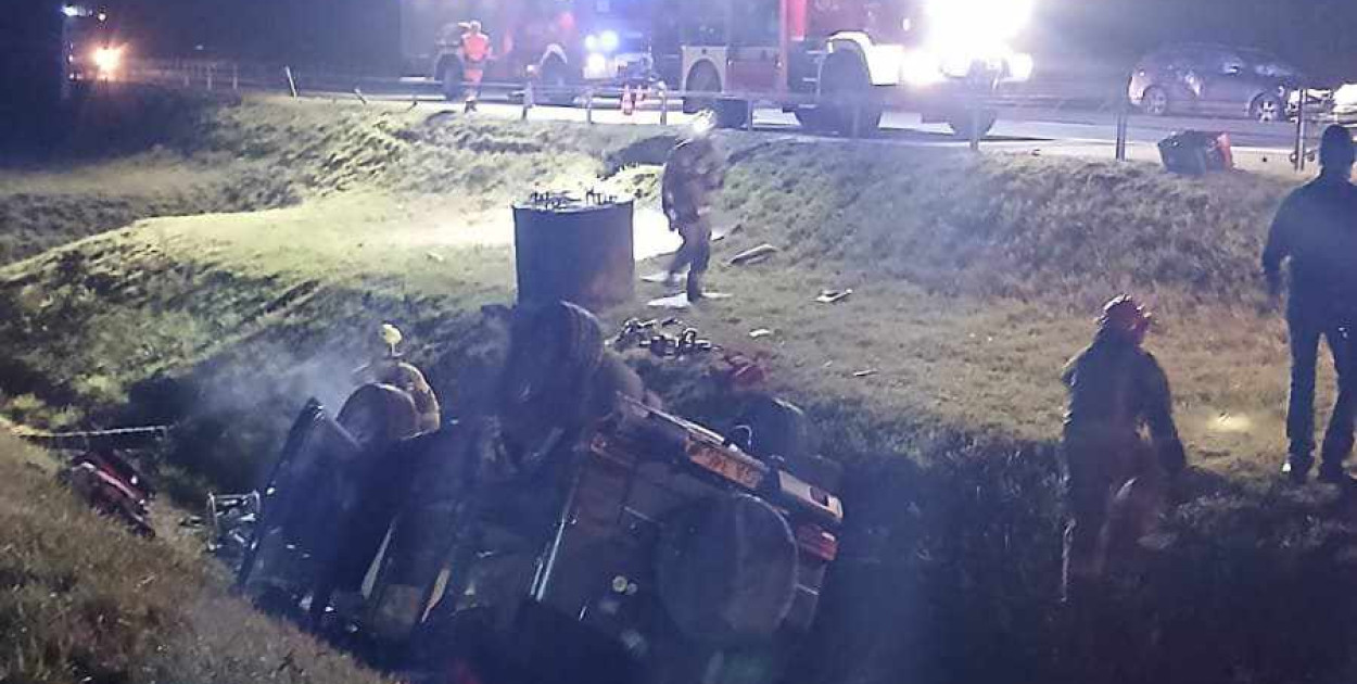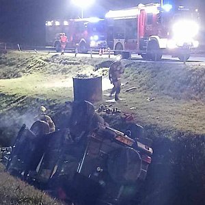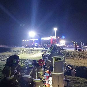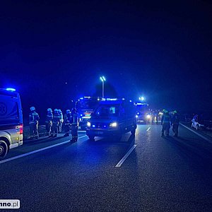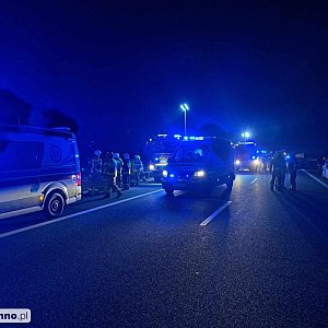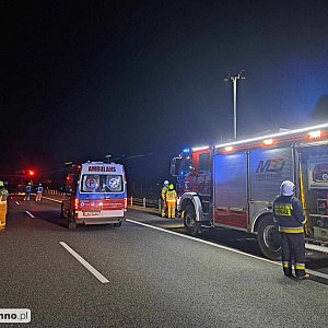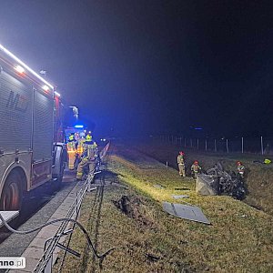 Po dojeździe na miejsce zdarzenia strażacy zastali Mercedesa poza drogą w rowie. Jedna osoba została poszkodowana - zabrana do szpitala śmigłowcem Lotniczego Pogotowia Ratunkowego. Autostrada była zablokowana.