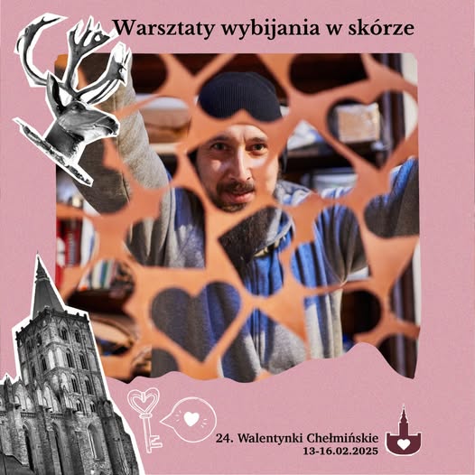 Czy jest coś piękniejszego niż własnoręcznie wykonana walentynka? W ramach 24. Walentynki Chełmińskie | 13-16.02.25 r. zapraszamy Was na wyjątkowe warsztaty, podczas których zgłębicie tajniki sztuki wybijania w skórze i stworzycie niepowtarzalne dzieła!