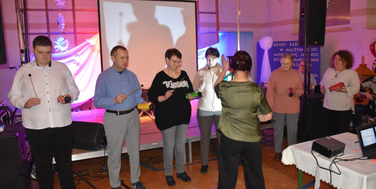 Do wspólnych śpiewanek wprowadzili wszystkich uczestników podopieczni i przedstawiciele Stowarzyszenia na Rzecz Osób Niepełnosprawnych, grając kolędę na cymbałkach. Wydarzenie uświetnił również zespół TABGA oraz Grzegorz Jabłoński wraz z uczniami Amatorskiego Ruchu Muzycznego, przygrywając i śpiewając znane wszystkim kolędy. Nie zabrakło również świątecznej atmosfery, słodkiego poczęstunku oraz gorącej kawy.