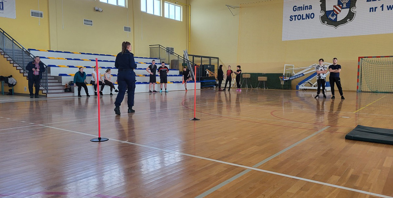 W sali sportowej Szkoły Podstawowej w Stolnie odbył się kolejny już próbny testy sprawności fizycznej dla osób, które rozważają założenie policyjnego munduru. Uczestnicy zajęć mieli okazję przećwiczyć pokonywanie toru sprawnościowego i wysłuchać wskazówek instruktora.