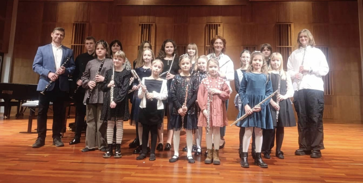 25 lutego 2025 uczniowie klasy fletu p. Aleksandry Gasin oraz klarnetu p. Krzysztofa Jaruszewskiego zagrali wspólny koncert zatytułowany "Klarnety i flety grają duety".