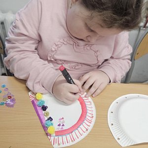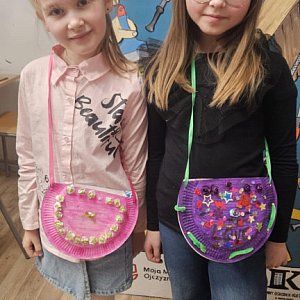 Dzieci uczestniczące na zajęcia plastyczno - techniczne wykonały, pod okiem instruktorki Kamila Jendrzejewska-Bonek, kolorową i bardzo wiosenną fotoramkę oraz nieodłączny dodatek kobiecej garderoby - pomysłowe torebki.