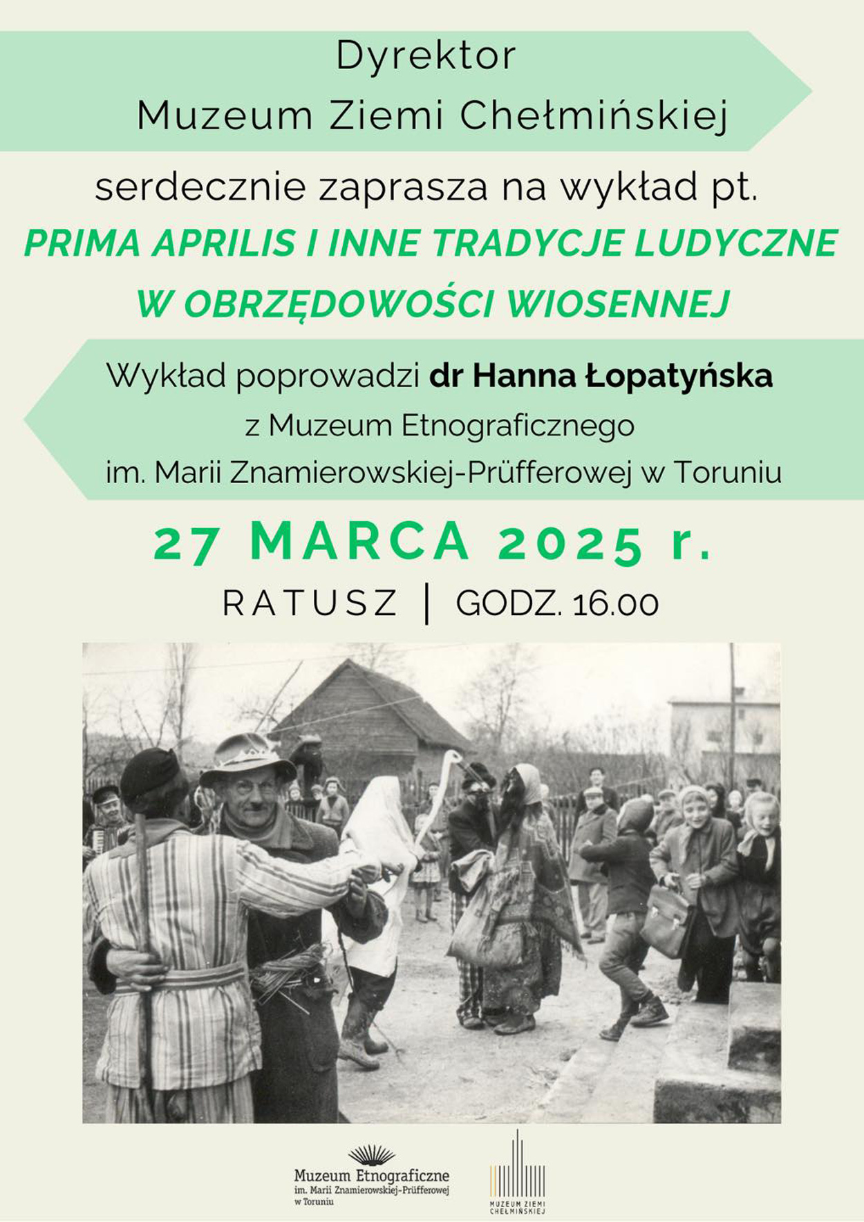 Dyrektor Muzeum Ziemi Chełmińskiej w Chełmnie serdecznie zaprasza na wykład pt. " Prima Aprilis i inne tradycje ludyczne w obrzędowości wiosennej".