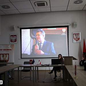 Młodzież obejrzała film, który powstał z okazji 25-lecia samorządu, poznała strukturę urzędu, zadania pracowników. Dowiedziała się, jakie akty prawne regulują pracę urzędu i pracę samorządu, jak wybierane są władze Powiatu Chełmińskiego i z jakimi sprawami można zgłaszać się do Starostwa.
