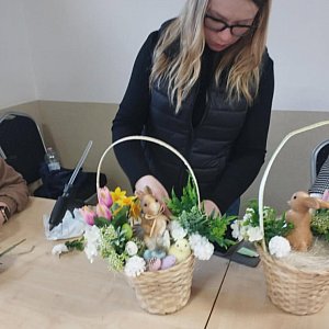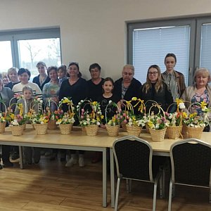 Dnia 09.04.2025 r. w Świetlicy Wiejskiej w Oborach odbyły się warsztaty florystyczne z tworzenia stroików wielkanocnych.