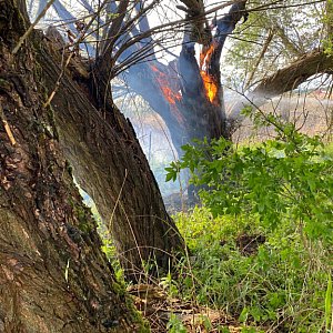 Na miejscu zdarzenia strażacy zastali pożar trzcinowiska na terenie starego koryta Wisły na powierzchni 1 ha. Wiał porywisty wiatr, który utrudniał gaszenie.