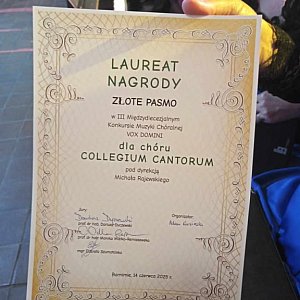 Chełmiński chór Collegium Cantorum pod dyrekcją Michała Rajewskiego wyśpiewał Złote Pasmo oraz Nagrodę Specjalną za wieloletnią działalność artystyczną w województwie kujawsko- pomorskim.