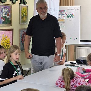 Dzień rozpoczęli od ciekawej pogadanki z Panem terapeutą, który opowiedział młodym słuchaczom, jak unikać uzależnień – m.in. od telefonów i słodyczy .