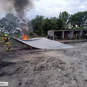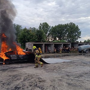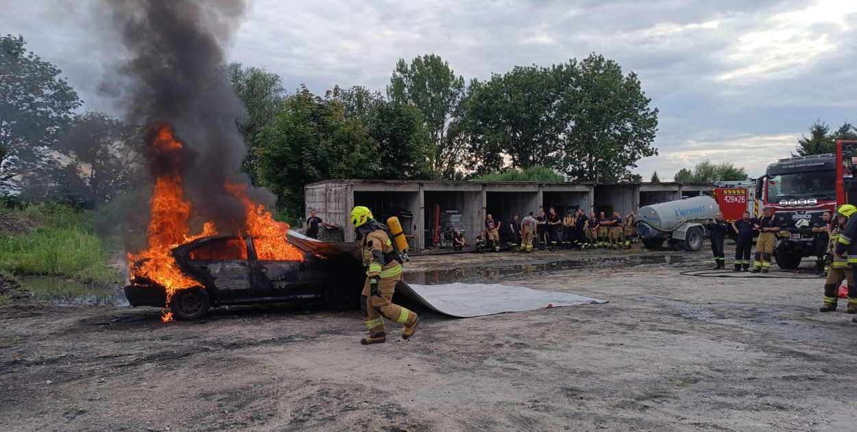 Podczas demonstracji przedstawiciel firmy PM3D S.A. z Bydgoszczy przedstawił budowę, właściwości oraz technikę stosowania płachty gaśniczej w gaszeniu pożarów pojazdów. Zaprezentowano również sposób bezpiecznego rozkładania i zdejmowania płachty, a także omówiono jej odporność na wysokie temperatury oraz możliwość wielokrotnego użycia. Uczestnicy mieli okazję przetestować płachtę w praktyce.