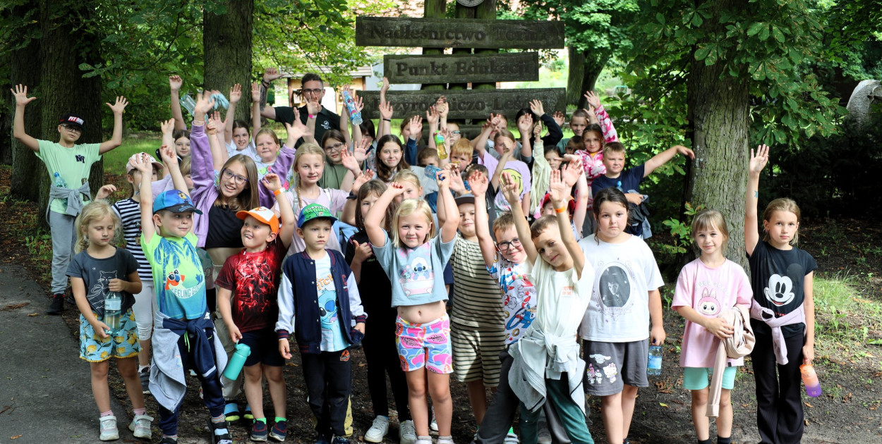 Po energetycznej zabawie przenieśliśmy się do punktu edukacji przyrodniczo-leśnej w Leśnictwie Olek, gdzie czekał na nas Pan Hubert Grabara. Uczestnicy wycieczki poznali tajniki lasu – jego mieszkańców, roślinność i różnorodne ciekawostki na temat przyrody. Zwiedzanie lasu było pełne fascynujących opowieści i praktycznych doświadczeń. Dzieci miały okazję zobaczyć różnorodne gatunki drzew, a nawet poznać gatunki grzybów. Spacer był nie tylko edukacyjną lekcją, ale i świetną okazją do rozwijania ciekawości świata i szacunku dla natury.