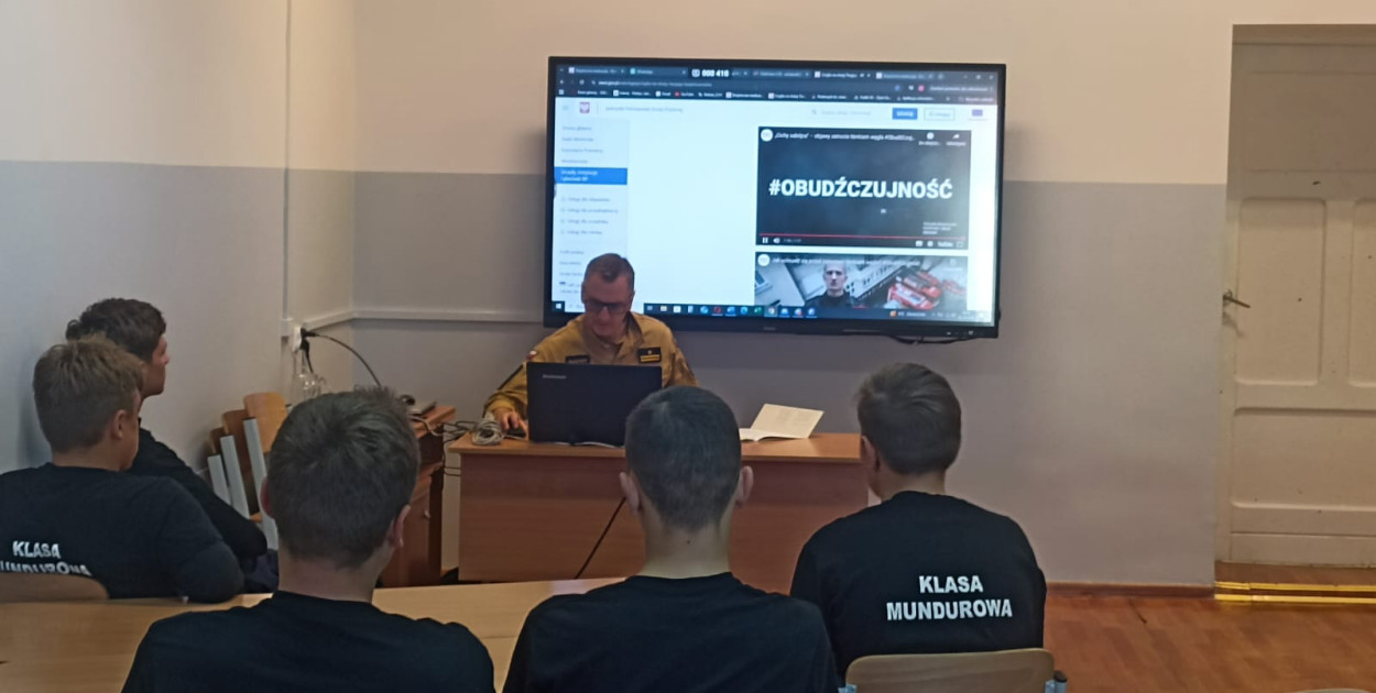 Dzisiaj zajęcia z uczniami prowadził mł. bryg. Sławomir Leśniak.