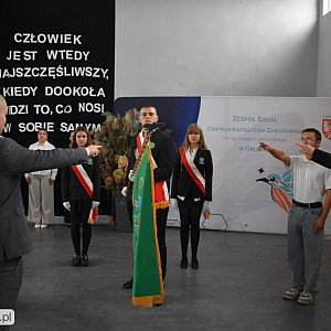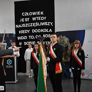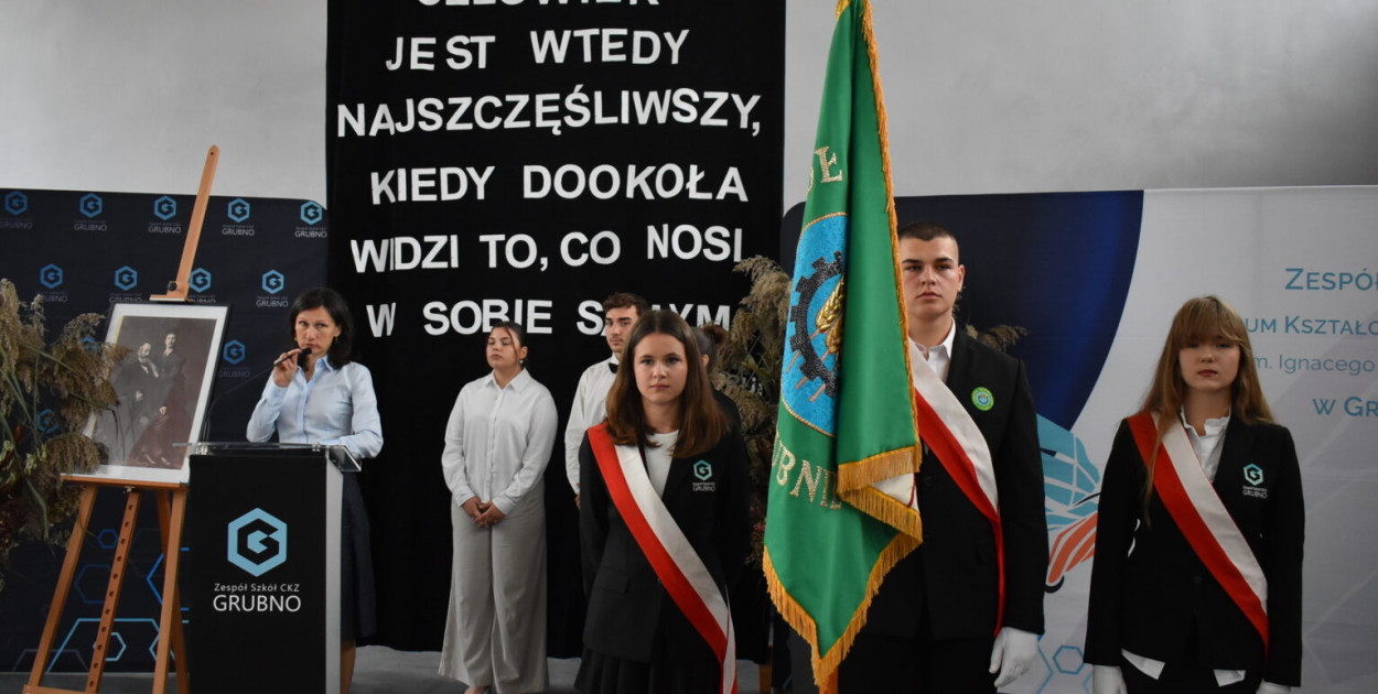 Przed ślubowaniem miała miejsce swoistego rodzaju lekcja na temat patrona ZS CKZ w Grubnie. Pani Dorota Pstrąg i Pan Piotr Sołtysiak przybliżyli uczniom życie i działalność Ignacego Łyskowskiego, społecznika i działacza doby polskiego pozytywizmu.