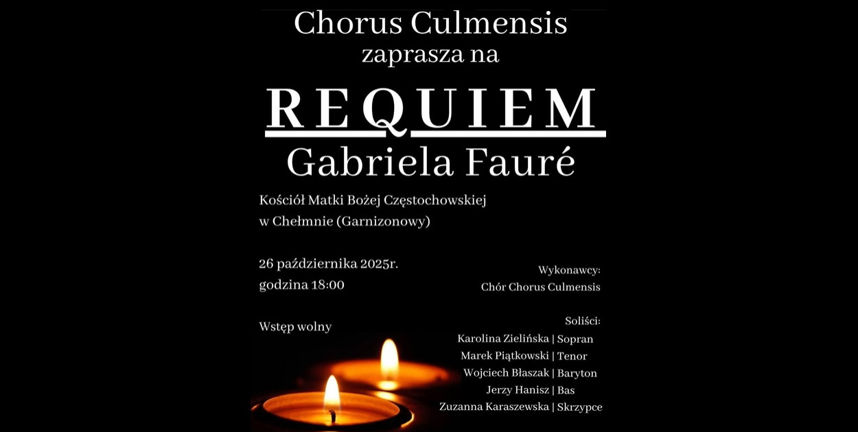 Serdecznie zapraszamy na koncert, podczas którego zabrzmi jedno z najpiękniejszych dzieł muzyki sakralnej – „Requiem” Gabriela Fauré.