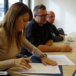 Z przedstawicielami wykonawcy i nadzoru inwestorskiego spotkali się dziś: Starosta Chełmiński Zdzisław Gamański. Wicestarosta Chełmiński Dorota Żulewska, Skarbnik Powiatu Chełmińskiego Janina Siemiątkowska oraz Dyrektor Powiatowego Zarządu Dróg w Chełmnie Mariusz Kalkiewicz.