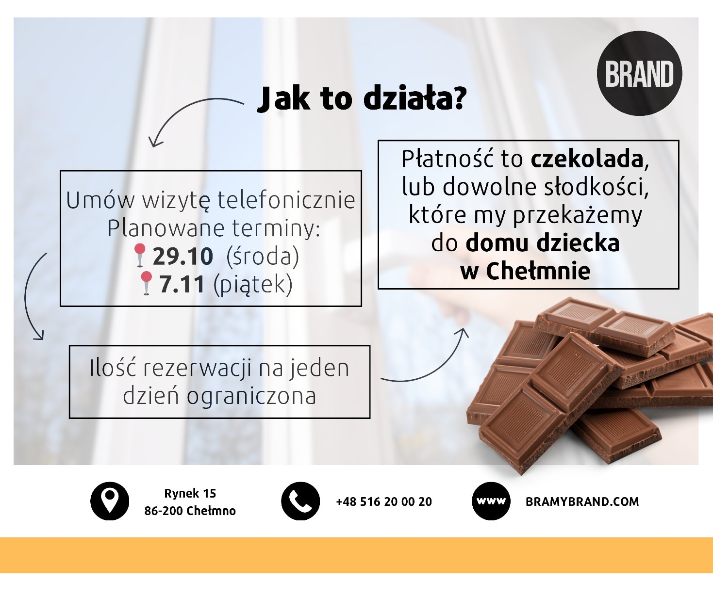 A no dlatego, że za tę pracę nie chcemy pieniędzy, ale bardzo chcielibyśmy otrzymać czekoladę w ramach zapłaty. Mogą to być też dowolne słodycze. Po pracy jednak nie będziemy się nimi zajadać, a przekażemy je do domu dziecka w Chełmnie, żeby dzieciaki miały akurat coś pysznego na początek grudnia.