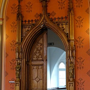 renowację trzech drzwi wejściowych do auli z oprawą architektoniczną w tym główne drzwi wejściowe posiadające liczne zdobienia głównie w stylu neogotyckim.