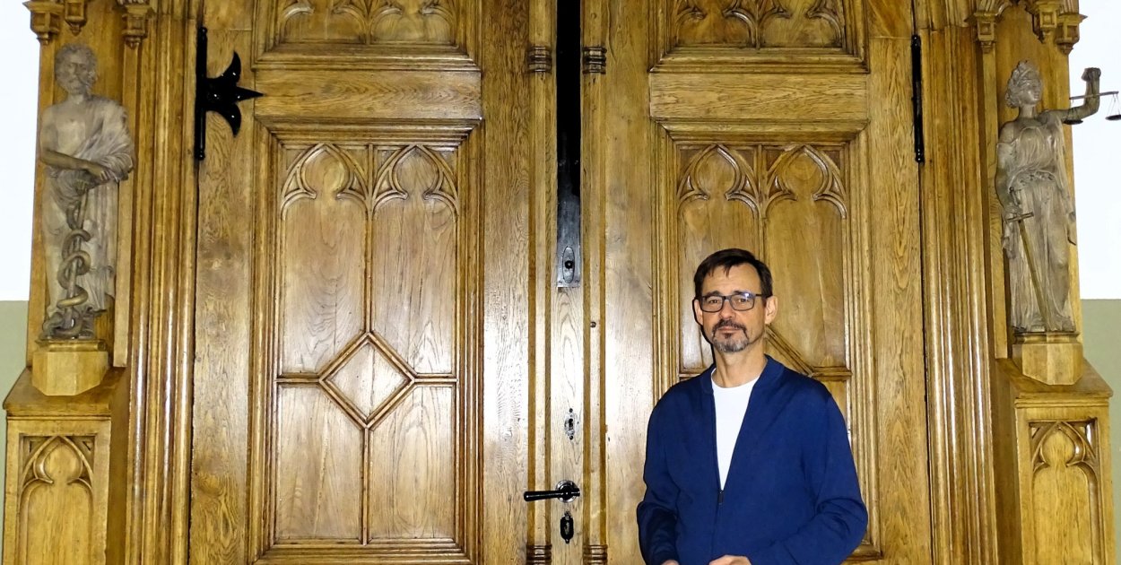 Fragmenty boazerii były zdejmowane i przechodziły renowację w pracowni w Toruniu, trafiały tam również pojedyncze fragmenty drzwi głównych, opowiada o renowacji Dyrektor ZSO nr 1 w Chełmnie Piotr Orłowicz.