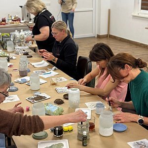 Pracowałyśmy ponad 4h z pełnym zaangażowaniem, efekty zachwycają. Taki rodzaj upcyclingu bardzo zachęca do wykorzystania szkła które mamy w domu w postaci słoików czy butelek do tworzenia dekoracji idealnych do domu czy na prezent.