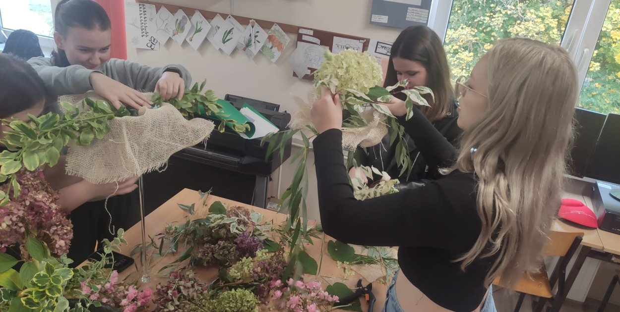 Zajęcia bukieciarsko-florystyczne pozwoliły uczniom nie tylko rozwinąć zdolności artystyczne, ale również pogłębiły ich wiedzę o doborze materiału roślinnego, zasadach kompozycji oraz estetyce w aranżacjach florystycznych.
