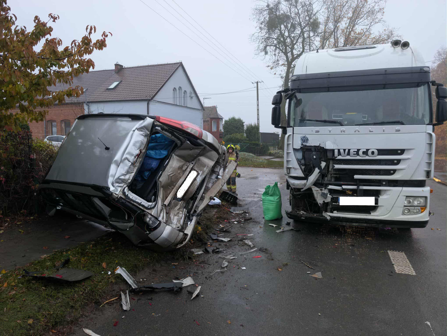 W poniedziałek 3 listopada o godzinie 6:46 w miejscowości Płutowo (pow. chełmiński) doszło do poważnego zderzenia dwóch pojazdów – samochodu osobowego oraz ciężarówki Iveco przewożącej żwir.