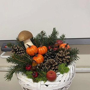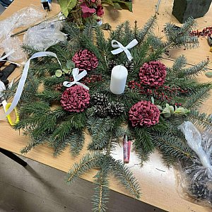 W ruch poszły żywe i sztuczne kwiaty, liście, szyszki, suszki oraz mnóstwo innych naturalnych dodatków. Dominowały oczywiście barwy jesieni – ciepłe pomarańcze, złoto, czerwienie i brązy. Niektórzy uczniowie postawili na eleganckie stroiki stołowe, inni tworzyli efektowne wieńce i wianki – idealne do dekoracji domu lub na groby bliskich. Podczas pracy uczniowie wykazali się nie tylko kreatywnością, ale także znajomością zasad florystyki – zadbali o odpowiedni układ, proporcje i kompozycję. Nie zabrakło też profesjonalnego sprzętu florystycznego: gąbek, drucików, nożyczek i klejów na gorąco – jednym słowem, prawdziwy florystyczny warsztat w akcji! Efekty? Zachwycające! Każda praca miała swój niepowtarzalny styl – od delikatnych i klasycznych po nowoczesne i odważne. W sali unosił się zapach lasu, jesiennych liści i świeżych kwiatów, a uśmiechy uczniów mówiły wszystko – nauka przez działanie to naprawdę świetna zabawa! Podsumowując – to były zajęcia pełne pasji, koloru i dobrej energii!