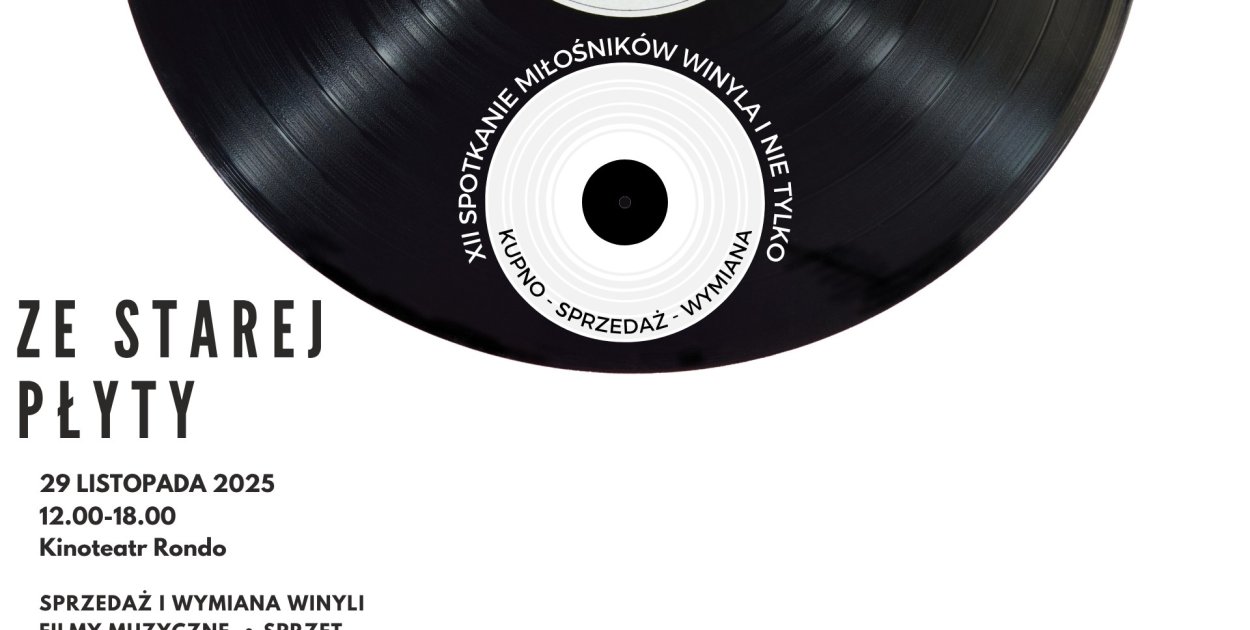 Mamy ogromną przyjemność zaprosić Państwa do udziału w Ze starej płyty. XII spotkanie miłośników winyla i nie tylko, które odbędzie się 29 listopada 2025 r., w Kinoteatrze RONDO (ul. Dworcowa 23a, 86-200 Chełmno).