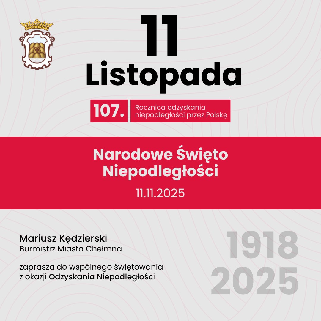 Burmistrz Miasta Chełmna Mariusz Kędzierski zaprasza mieszkańców do udziału w uroczystościach patriotycznych.