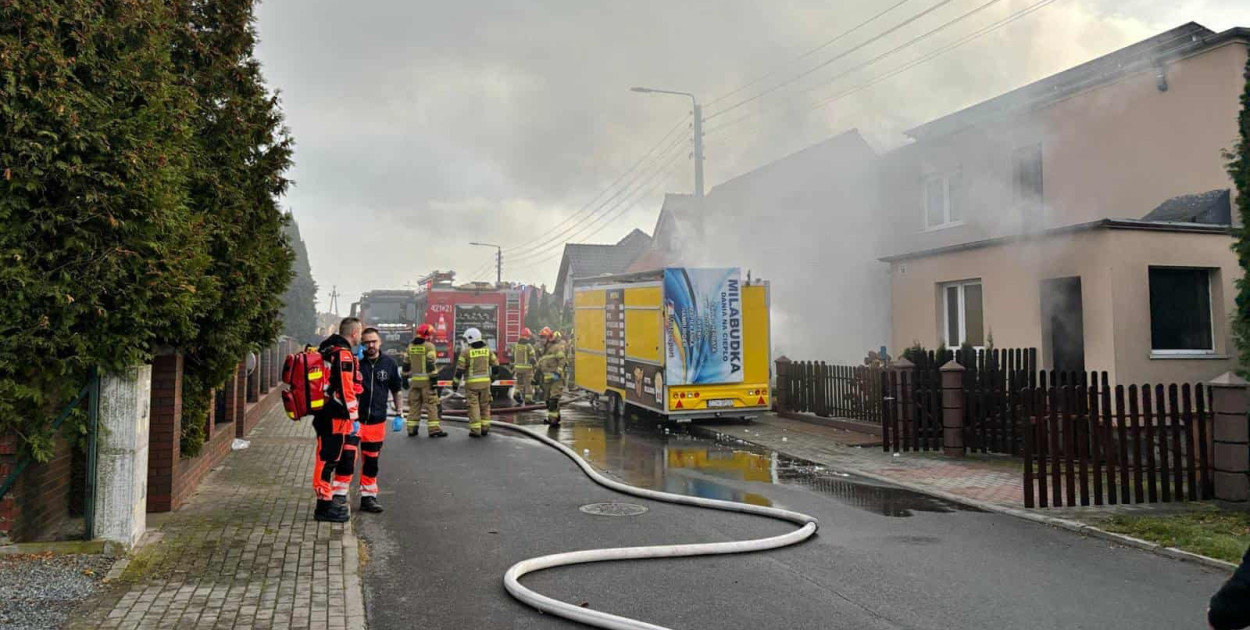 Przed przyjazdem służb z mocno zadymionego domu zdołały ewakuować się trzy osoby. Pożar rozpoczął się w pomieszczeniach piwnicy budynku. Mężczyzna z poparzeniami został natychmiast przekazany pod opiekę zespołu ratownictwa medycznego.