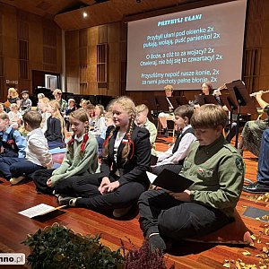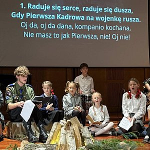 Uczniowie i nauczyciele wraz z publicznością uczcili ten ważny dzień w historii Polski poprzez wspólne śpiewanie pieśni patriotycznych. W szkolnej sali rozbrzmiały melodie, które od pokoleń budzą w nas dumę i wzruszenie – przypominając o bohaterach, wolności i miłości do Ojczyzny.