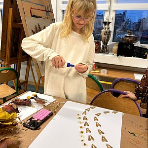 Uczestnicy formowali kompozycje z tego, co daje nam przyroda: jesiennych liści, kwiatów, nasion, czy gałązek.